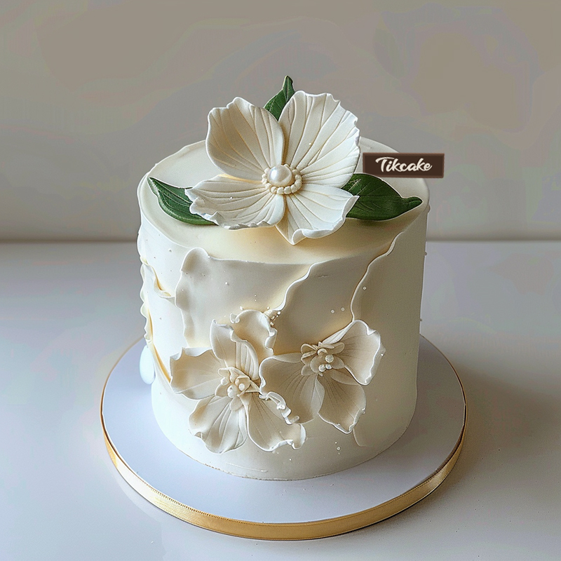 原创优雅白色系翻糖鲜奶蛋糕