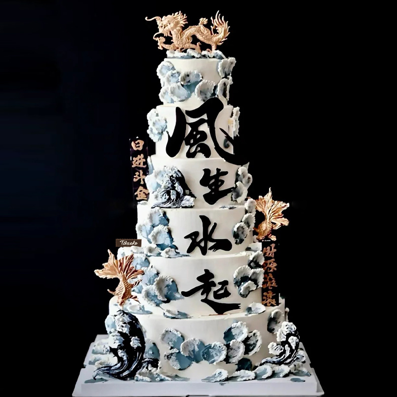 “风生水起”主题六层鲜奶企业蛋糕