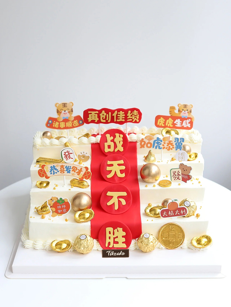 内层蛋糕胚 奶油(含水果果肉)叠层,表层翻糖皮,摆件等装饰(文案可定制,请下单时联系客服)