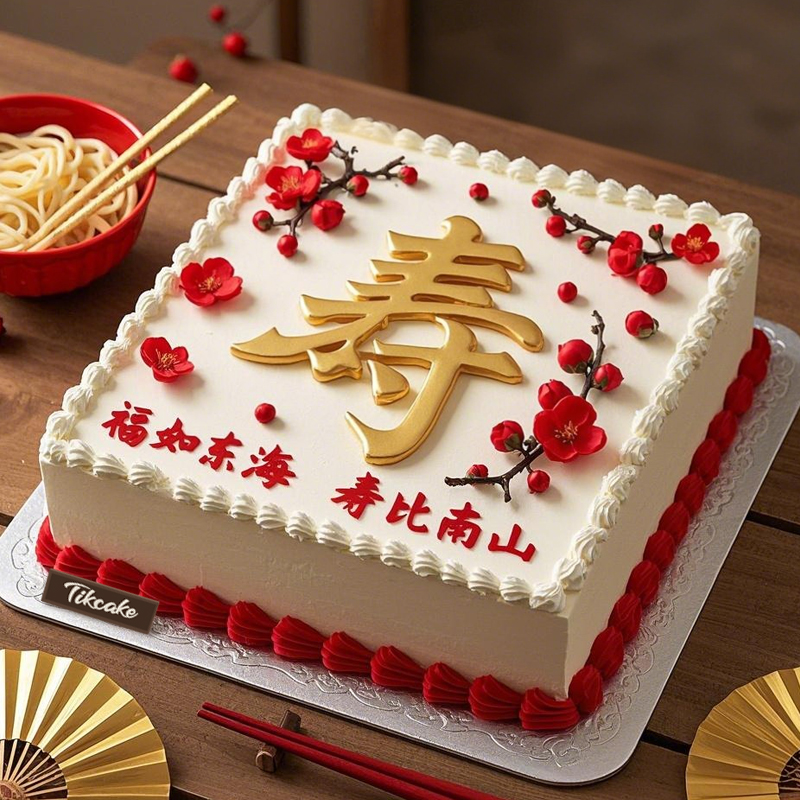 原创祝寿主题方形翻糖鲜奶蛋糕-凯发体育买球