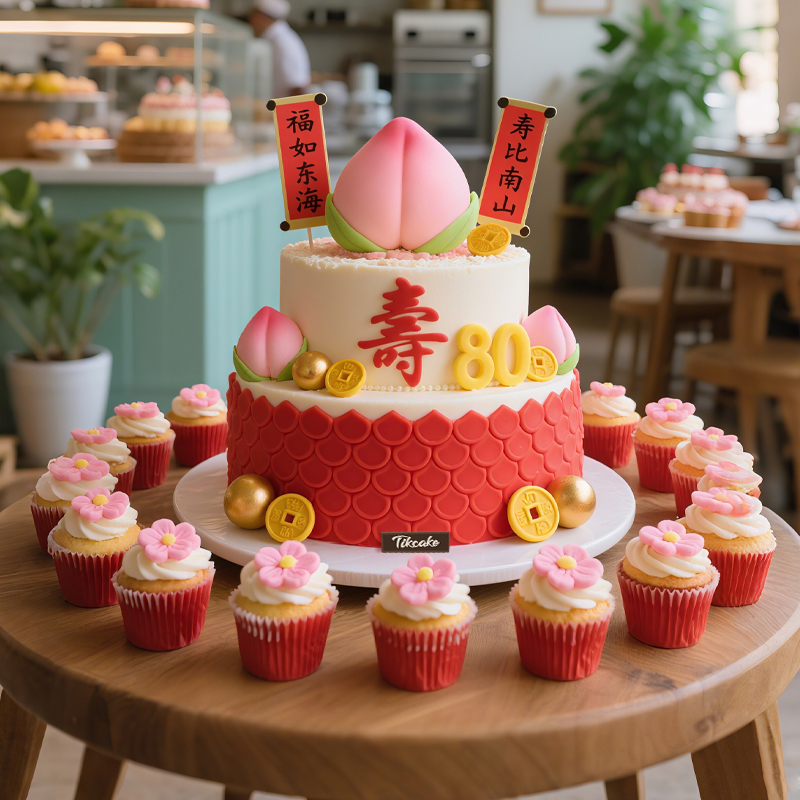 原创祝寿主题双层鲜奶蛋糕(含14个纸杯蛋糕)-凯发体育买球